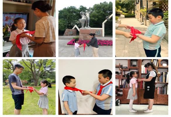 大家解下绿领巾,从家长手中接过红领巾,佩戴于胸前。此刻,他们拥有了一个骄傲的名字——中国少年先锋队队员。